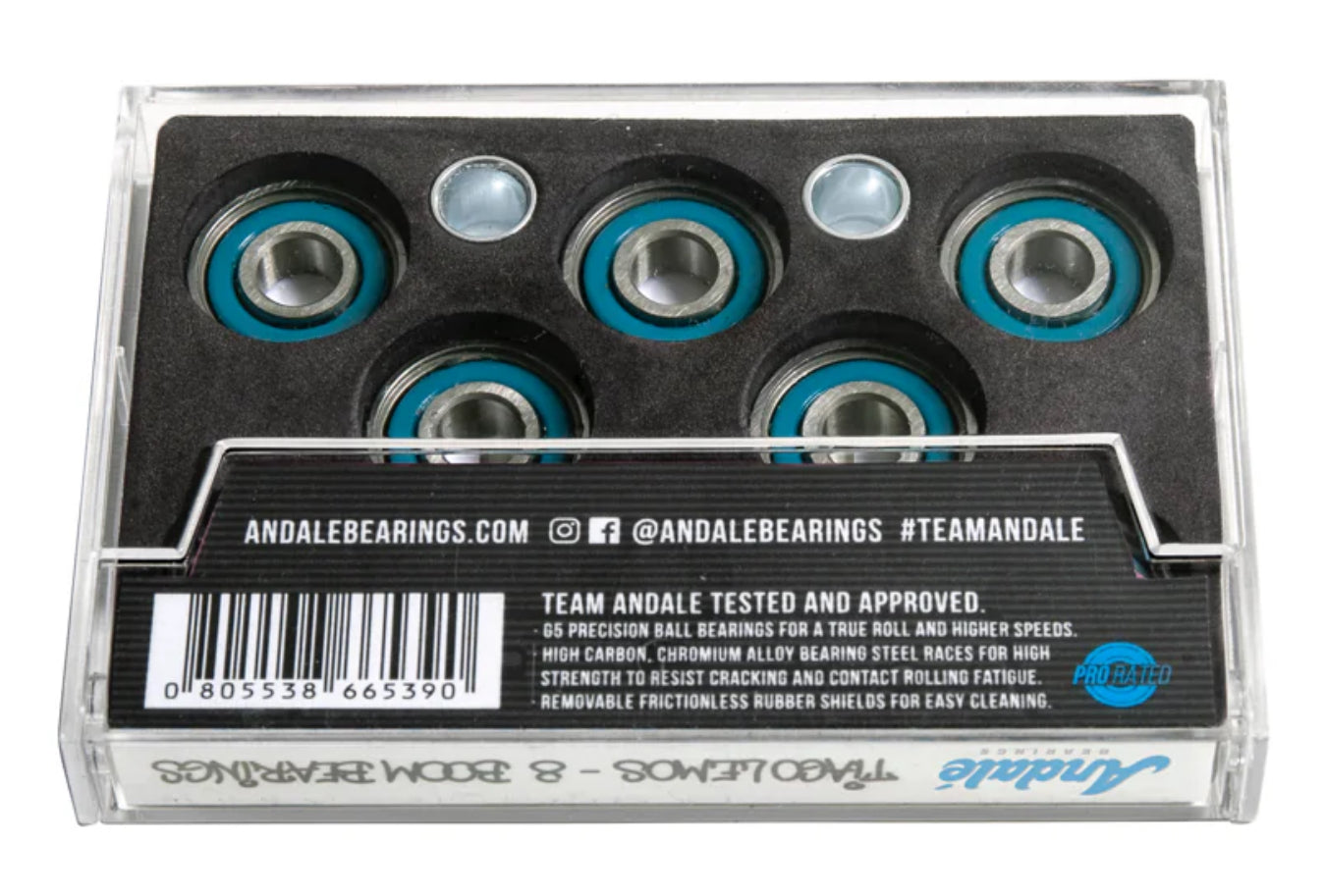 Andal̩e Bearings is a skater owned and operated company headed up by Joey Brezinski and Paul Rodriguez. Andal̩e aims to bring you the best quality bearings at affordable prices to keep you rolling strong. Andale was founded in 2010 by Joey and Paul, since then they have developed premium bearings and built up a solid team of riders ranging from up and coming ams to true legends. Always Fast, Pro Rated, Team Approved.