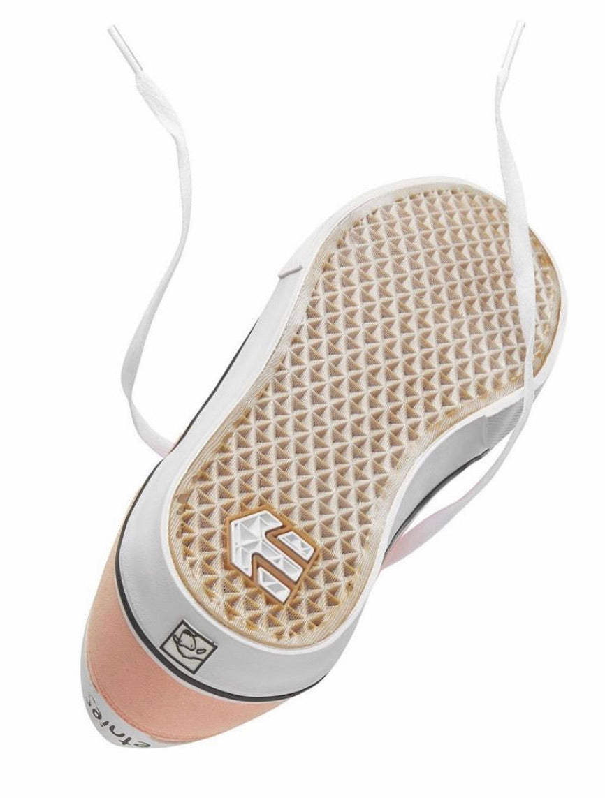 "The Calli Vulc is a single wrapped vulcanized constructed shoe with single wrap foxing. It has a Foam Lite 1 molded EVA footbed and Geo-Hex tread pattern. Rubber heel wrap for support with 400NBS rubber outsole.