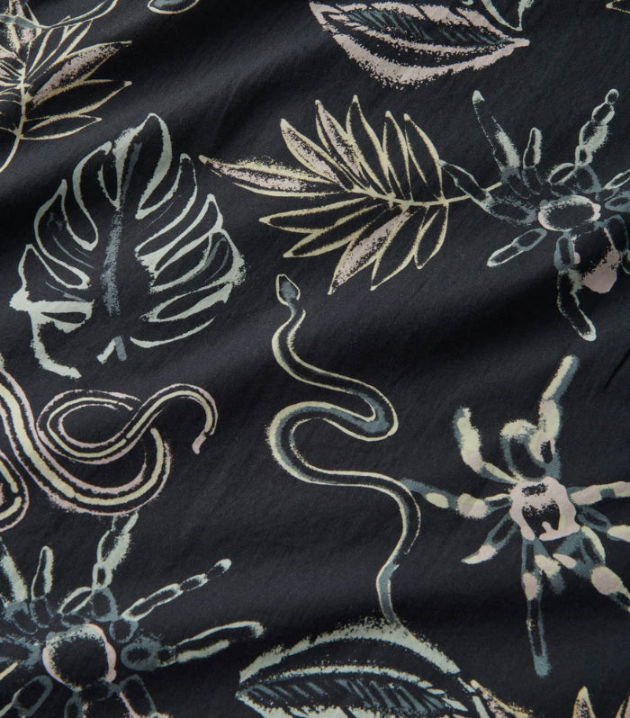 Our Journey Series of mens wovens feature a casual collar styling, perfect for casual climates. The Journey Tropakill is our interpretation of the lucid dreams that intermingled the local fauna with those eight legged arachnids.