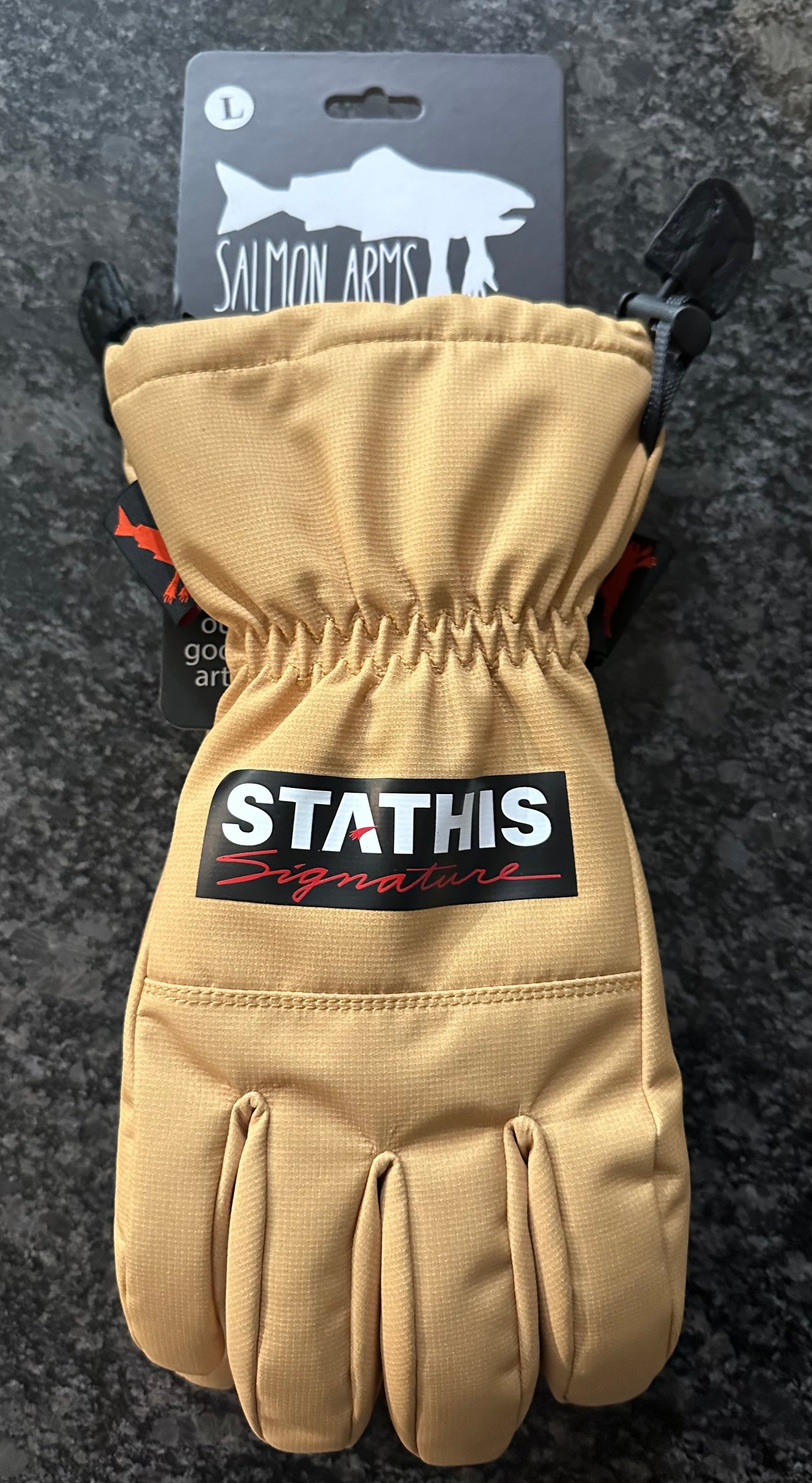 The GLOVE features a durable nylon shell, waterproof GORB - TEK insert, quality insulation, fleece liners, wrist cinch,on /off pull tab, mitten clips, leashes and tough leather palm .