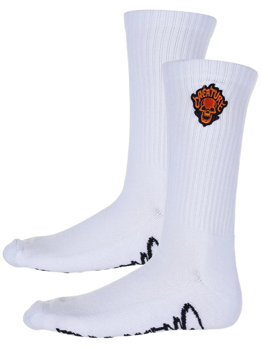 Add a touch of fire to your outfit with the Creature Bonehead Flame Socks. These crew socks sit just below the calf with Creature Embroidery the legs.